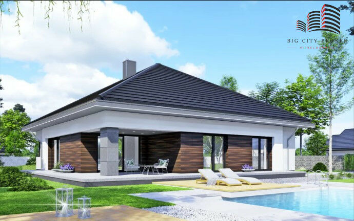 Opis:Na sprzedaż funkcjonalny, nowoczesny dom parterowy wg projektu APS 401 - idealny dla rodziny, osób ceniących wygodę życia bez schodów oraz czytelny podział na strefę dzienną i prywatną.