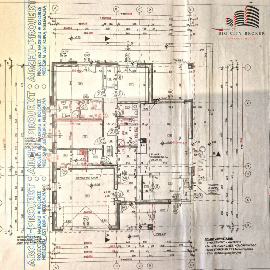 ściany zewnętrzne: beton komórkowy Ytong Energo 24 cm + ocieplenie EPS Termo Organika (fasada) 20 cm
